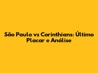 São Paulo Vs Corinthians: Último Placar E Análise