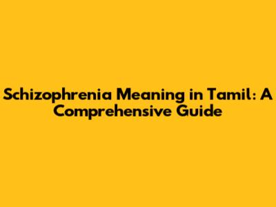 Schizophrenia Meaning In Tamil: A Comprehensive Guide
