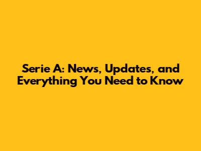 Serie A: News, Updates, And Everything You Need To Know