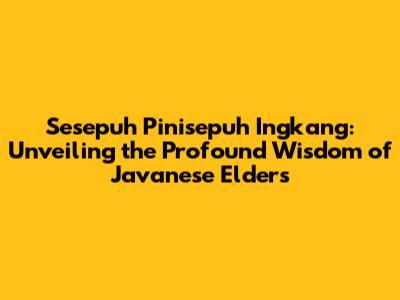 Sesepuh Pinisepuh Ingkang: Javanese Elders' Wisdom