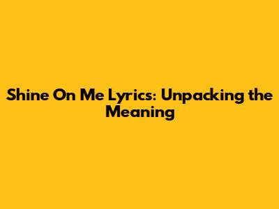 Shine On Me Lyrics: Unpacking The Meaning