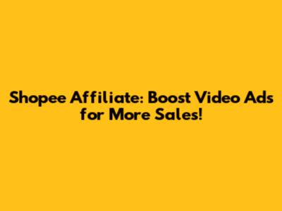 Shopee Affiliate: Boost Video Ads For More Sales!