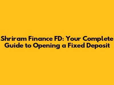 Shriram Finance FD: Your Complete Guide To Opening A Fixed Deposit