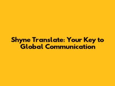 Shyne Translate: Your Key To Global Communication