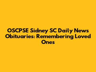 Sidney, SC Obituaries: OSCPSE & Daily News Updates