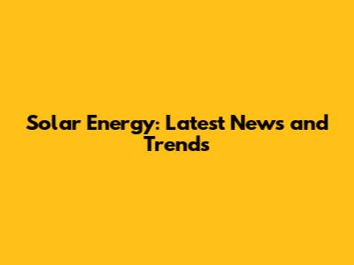 Solar Energy: Latest News And Trends