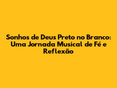 "Sonhos de Deus Preto no Branco" é muito mais do que uma música; é um hino que fala diretamente ao coração. Ela nos lembra da importância da fé, da esperança e da busca por um propósito maior. A cifra, a letra e o significado se unem para criar uma experiência musical que transcende o tempo, inspirando e confortando pessoas de todas as idades e origens. É uma música que nos convida a sonhar, a acreditar e a confiar que, com Deus, tudo é possível. Então, da próxima vez que você ouvir essa música, lembre-se de que você está recebendo uma mensagem de amor, esperança e fé. Deixe que ela te inspire a ser a melhor versão de si mesmo e a seguir em frente com coragem e determinação. Que a mensagem de "Sonhos de Deus Preto no Branco" continue a tocar e transformar vidas por muitos e muitos anos!