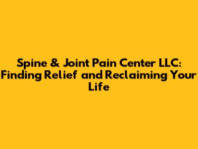 • Q: Is Spine & Joint Pain Center LLC a good choice for me? A: It's a great option if you're experiencing spine or joint pain and are looking for a comprehensive approach to treatment. It is also good if you want a team of experienced professionals dedicated to helping you get back to your best life.