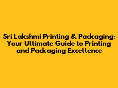 Sri Lakshmi Printing & Packaging: Your Ultimate Guide