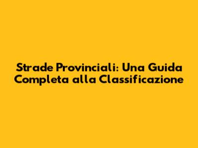 Strade Provinciali: Una Guida Completa Alla Classificazione