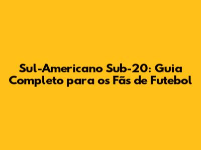 Sul-Americano Sub-20: Tudo O Que Você Precisa Saber