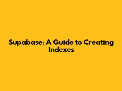 How to Create Indexes in Supabase