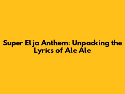 Super Elja Anthem: Unpacking The Lyrics Of 'Ale Ale'