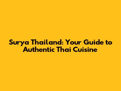 Surya Thailand: Your Guide To Authentic Thai Cuisine