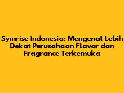 Symrise Indonesia adalah perusahaan yang memainkan peran penting dalam industri flavor dan fragrance di Indonesia. Mereka nggak cuma menyediakan bahan-bahan untuk produk makanan, minuman, parfum, dan produk perawatan pribadi, tapi juga berkontribusi pada inovasi, kualitas, keberlanjutan, dan pertumbuhan ekonomi.