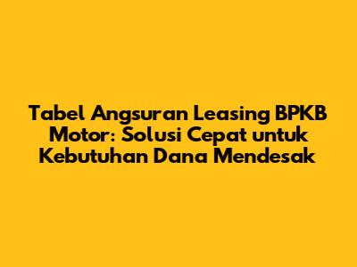 Tabel angsuran leasing BPKB motor adalah informasi krusial bagi kalian yang sedang mencari pinjaman dana dengan jaminan BPKB motor. Guys, memahami tabel ini bisa membantu kalian merencanakan keuangan dengan lebih baik, menghindari jebakan bunga tinggi, dan memastikan cicilan yang sesuai dengan kemampuan finansial. Mari kita bedah tuntas seluk-beluk tabel angsuran leasing BPKB motor, mulai dari cara membacanya, faktor yang mempengaruhinya, hingga tips memilih leasing yang tepat. So, siap-siap, ya!