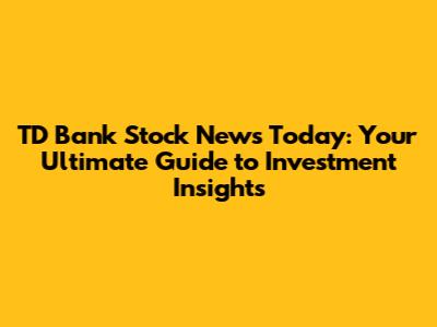 TD Bank Stock: Latest News & Investment Insights