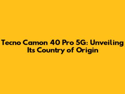 Tecno Camon 40 Pro 5G: Unveiling Its Country Of Origin