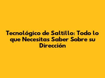 Te hemos proporcionado la dirección del Tecnológico de Saltillo (Blvd. Venustiano Carranza 2400, Tecnológico, 25280 Saltillo, Coah., México), los datos de contacto (teléfono y sitio web) y algunos consejos sobre cómo llegar. Además, te hemos hablado sobre los programas educativos, las instalaciones y los servicios que ofrece la institución.