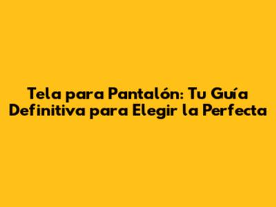 Tela Para Pantalón: Guía Completa