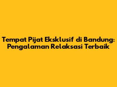 Berikut adalah beberapa rekomendasi tempat pijat eksklusif di Bandung yang bisa Anda pertimbangkan (perlu dicatat bahwa daftar ini dapat berubah, jadi sebaiknya Anda melakukan riset lebih lanjut untuk informasi terbaru):