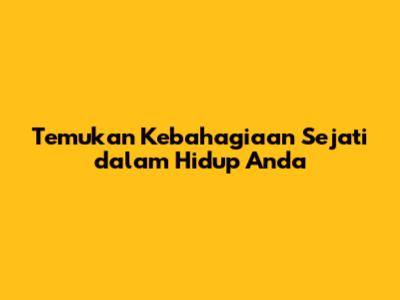 Temukan Kebahagiaan Sejati Dalam Hidup Anda