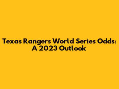 Texas Rangers World Series Odds: Can They Win In 2023?