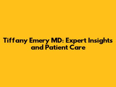 Tiffany Emery MD: Expert Insights And Patient Care