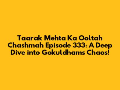 Hey guys! Let's dive into the uproarious world of Taarak Mehta Ka Ooltah Chashmah, specifically Episode 333! This episode is a classic, packed with the signature humor and heartwarming moments that have made the show a global phenomenon. We're going to break down the key plot points, highlight the funniest scenes, and explore why this episode continues to resonate with audiences of all ages. So, grab your popcorn, settle in, and get ready for a trip back to Gokuldham Society!