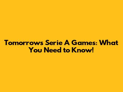 Tomorrow's Serie A Games: What You Need To Know!