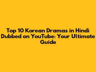 Top 10 Korean Dramas In Hindi Dubbed On YouTube: Your Ultimate Guide