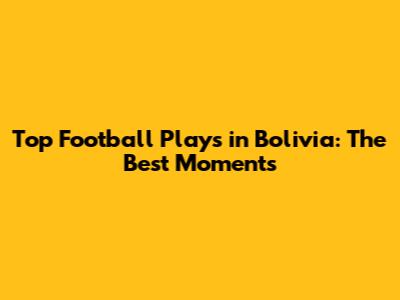 Top Football Plays In Bolivia: The Best Moments