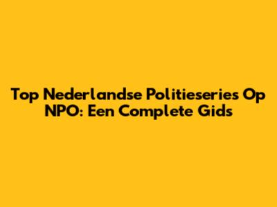 Top Nederlandse Politieseries Op NPO: Een Complete Gids