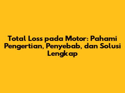 Total loss pada motor secara sederhana adalah kondisi di mana motor mengalami kerusakan yang sangat parah. Kerusakan ini sedemikian rupa sehingga biaya perbaikan motor menjadi lebih besar atau sama dengan nilai pasar motor itu sendiri. Atau, kerusakan pada motor dianggap sudah tidak ekonomis untuk diperbaiki, artinya biaya perbaikan akan jauh lebih mahal dibandingkan dengan manfaat yang didapat setelah motor diperbaiki. Biasanya, pihak asuransi akan menyatakan motor mengalami total loss jika kerusakan mencapai sekitar 75% atau lebih dari nilai motor. Dalam kondisi total loss, motor tidak lagi dapat digunakan secara layak dan aman untuk berkendara. Pemilik motor akan mendapatkan ganti rugi dari perusahaan asuransi, bukan perbaikan motor.