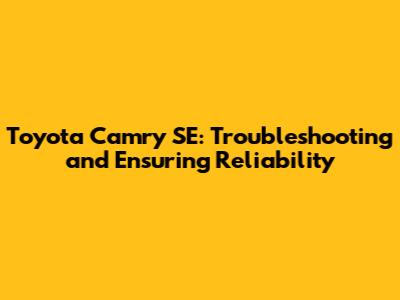 By understanding the common problems that can affect the Toyota Camry SE and following these troubleshooting and maintenance tips, you can ensure your car remains reliable and enjoyable for years to come. Regular maintenance, prompt attention to issues, and the use of quality parts are key to keeping your Camry SE in top condition. Drive safely and enjoy the ride!