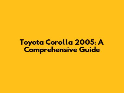 Toyota Corolla 2005: Specs, Common Issues & Repair Guide