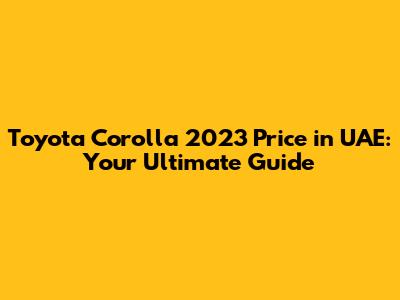 Toyota Corolla 2023 Price In UAE: Your Ultimate Guide