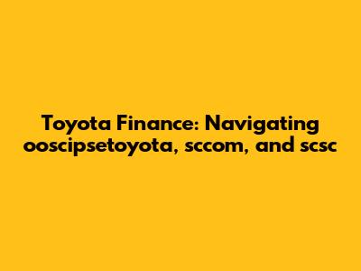Toyota Finance: Navigating Ooscipsetoyota, Sccom, And Scsc
