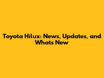 Toyota Hilux: News, Updates, And What's New