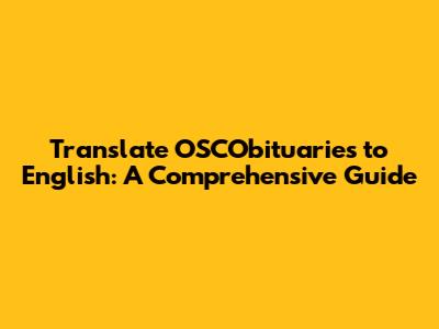 Translate OSCObituaries To English: A Comprehensive Guide