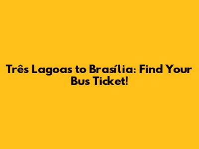 Alright, let's get down to business! Here’s how to find the best bus ticket from Três Lagoas to Brasília:
