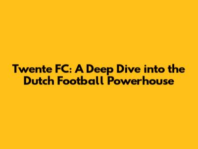 Twente FC: A Deep Dive Into The Dutch Football Powerhouse