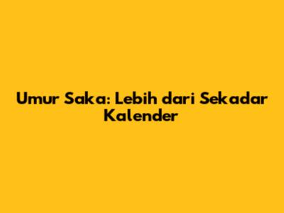 Umur Saka: Lebih Dari Sekadar Kalender