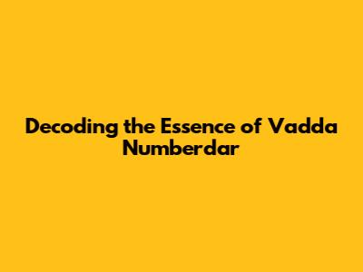 Understanding The World Of Vadda Numberdar