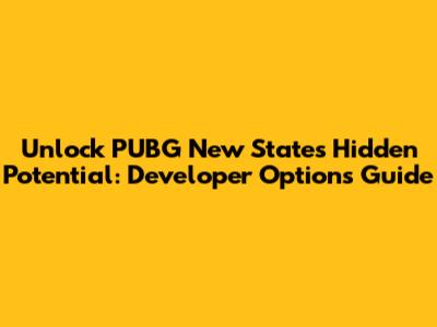 Unlock PUBG New State's Hidden Potential: Dev Options Guide