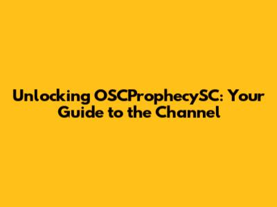 Unlocking OSCProphecySC: Your Guide To The Channel