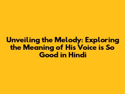 Unlocking The Magic: 'His Voice Is So Good' Meaning In Hindi
