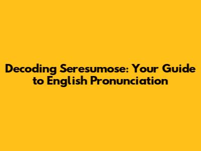 Breaking Down the Pronunciation of Seresumose