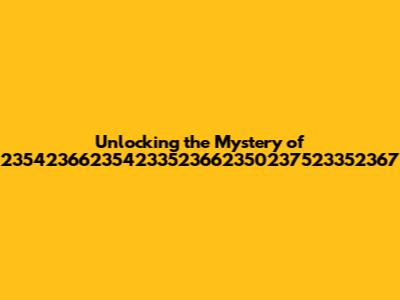 Unlocking The Mystery Of 235423662354233523662350237523352367