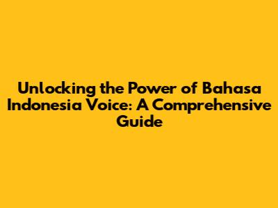 Unlocking The Power Of Bahasa Indonesia Voice: A Comprehensive Guide